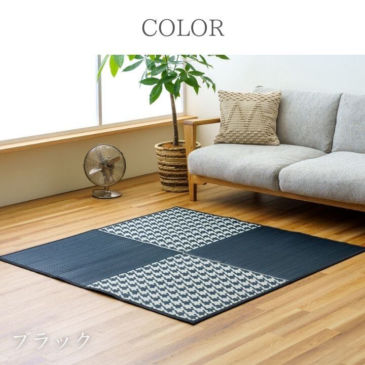 い草とポリプロピレンを織り込み、色目が華やかで耐久性のある商品です。使い勝手がよく、キッズスペースなどにおすすめのサイズ感。制菌、抗菌防臭、消臭効果があります。
