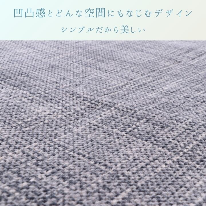 ボコボコとした凹凸を出し、なめらかな肌触りでオールシーズン活躍するラグカーペット。床に優しい不織布&滑り止め付き