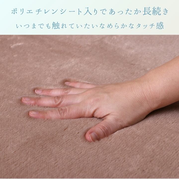 なめらかな手触りのあったかラグ 中材のポリエチレンシートが床からの冷気を遮断して熱を逃しにくくするので暖かさ長続き
