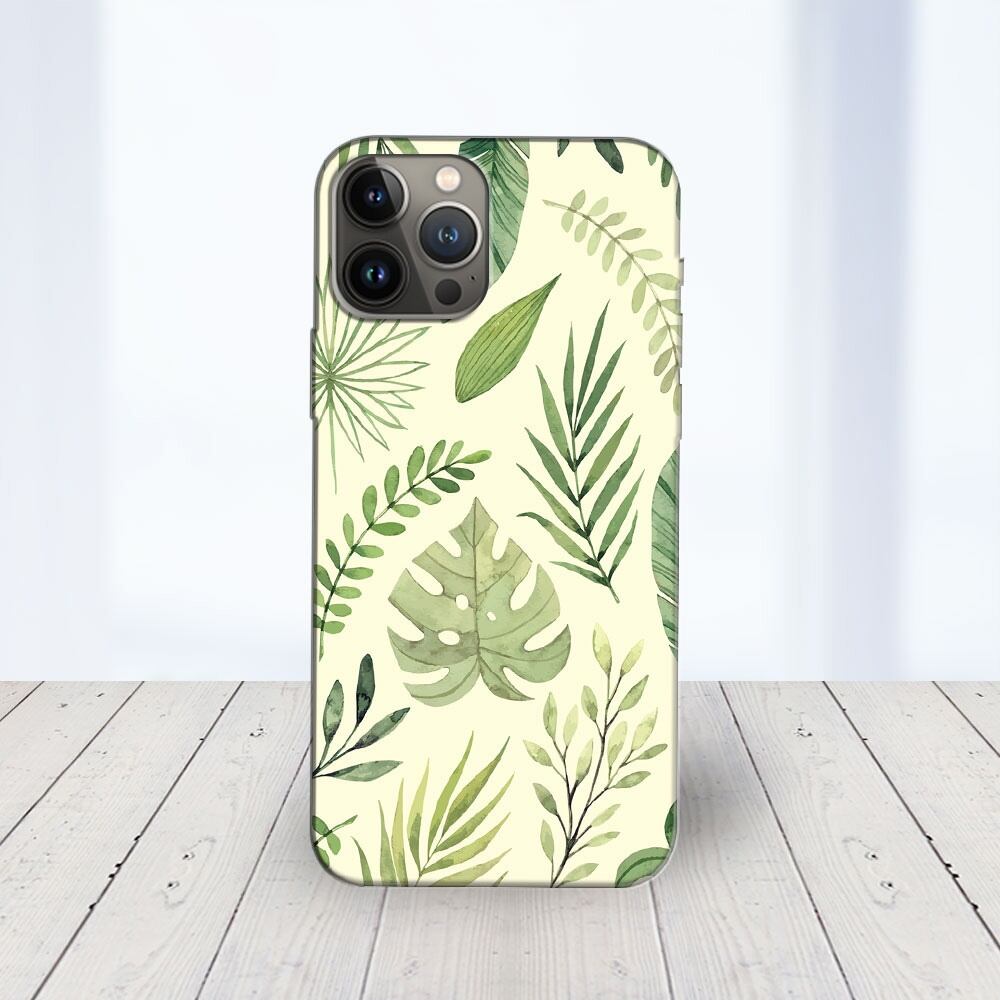 iPhone対応 スマホ ハードケース クリア リーフグリーン モダン デザイナーズ 【iPhone17 / iPhone16e / AQUOS / Xperia 他 iPhone / Android ほぼ全機種対応】 |desr2470