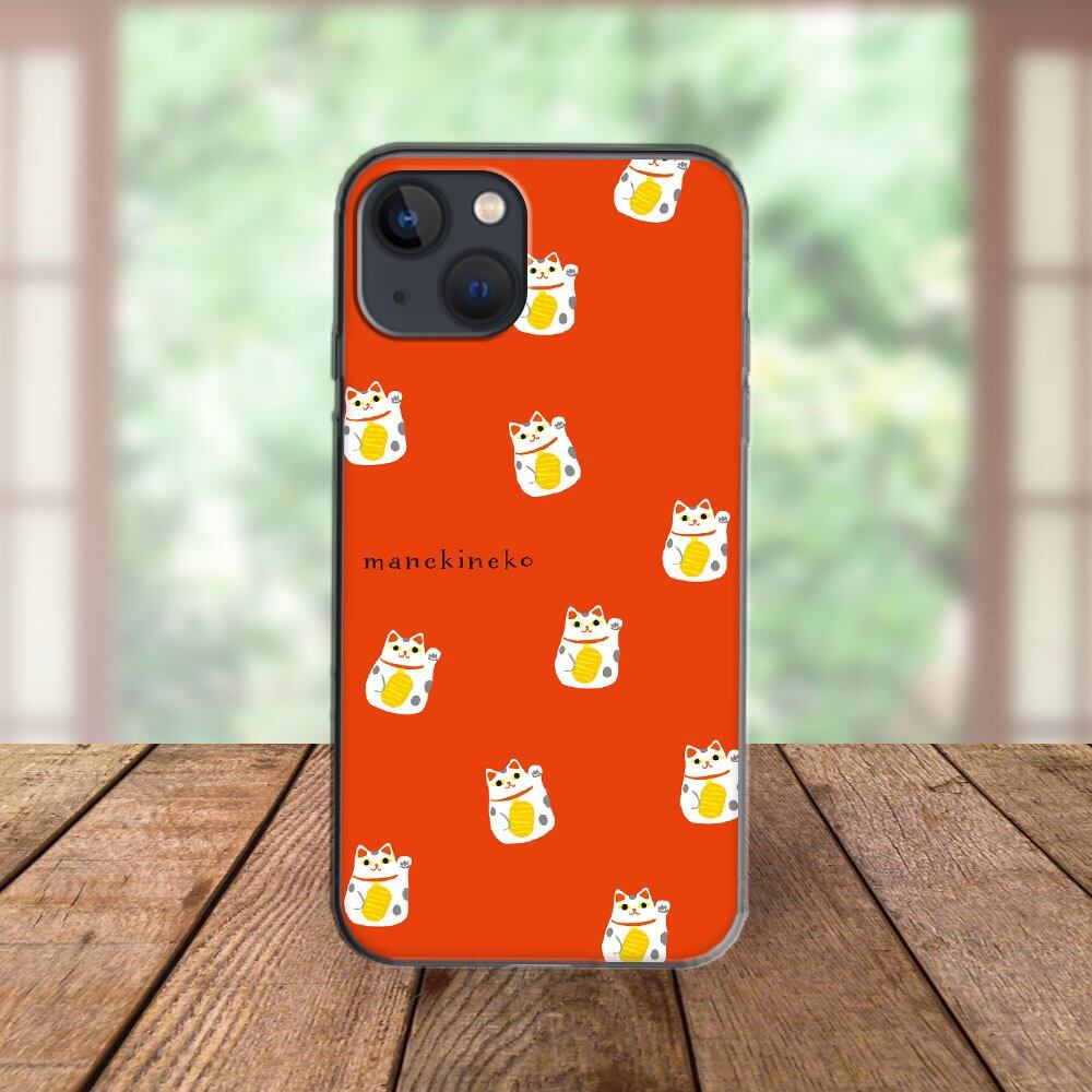 iPhone対応 スマホ ハードケース クリア 招き猫 いっぱい 民芸 デザイナーズ 【iPhone17 / iPhone16e / AQUOS / Xperia 他 iPhone / Android ほぼ全機種対応】 |desr2560