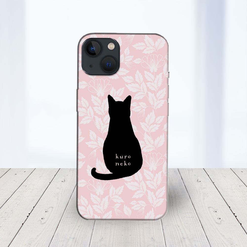 iPhone対応 スマホ ハードケース クリア クロネコ・ピンク 猫 デザイナーズ 【iPhone17 / iPhone16e / AQUOS / Xperia 他 iPhone / Android ほぼ全機種対応】 |desr2910