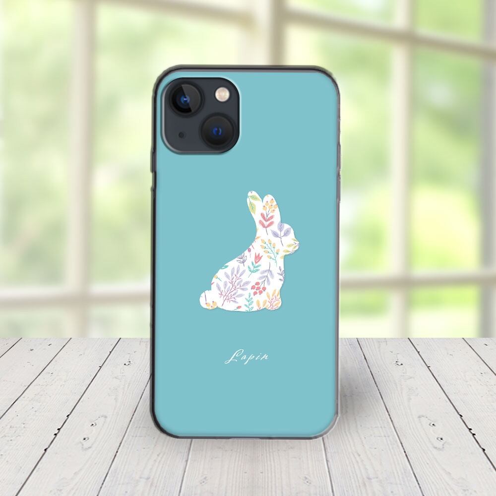 iPhone対応 スマホ ハードケース クリア フラワーうさぎ ミントグリーン 動物 【iPhone17 / iPhone16e / AQUOS / Xperia 他 iPhone / Android ほぼ全機種対応】 |desr2960