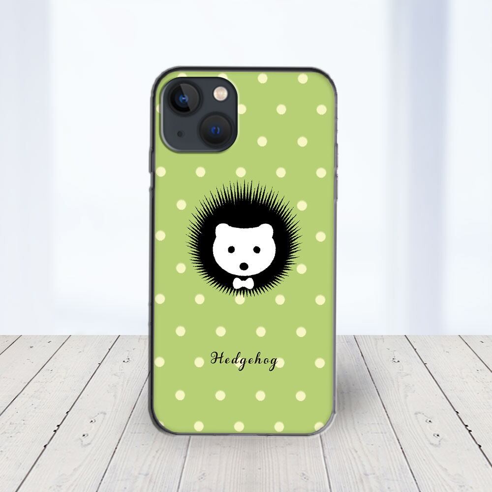 iPhone対応 スマホ ハードケース クリア ハリネズミ グリーン 動物 【iPhone17 / iPhone16e / AQUOS / Xperia 他 iPhone / Android ほぼ全機種対応】 |desr3130