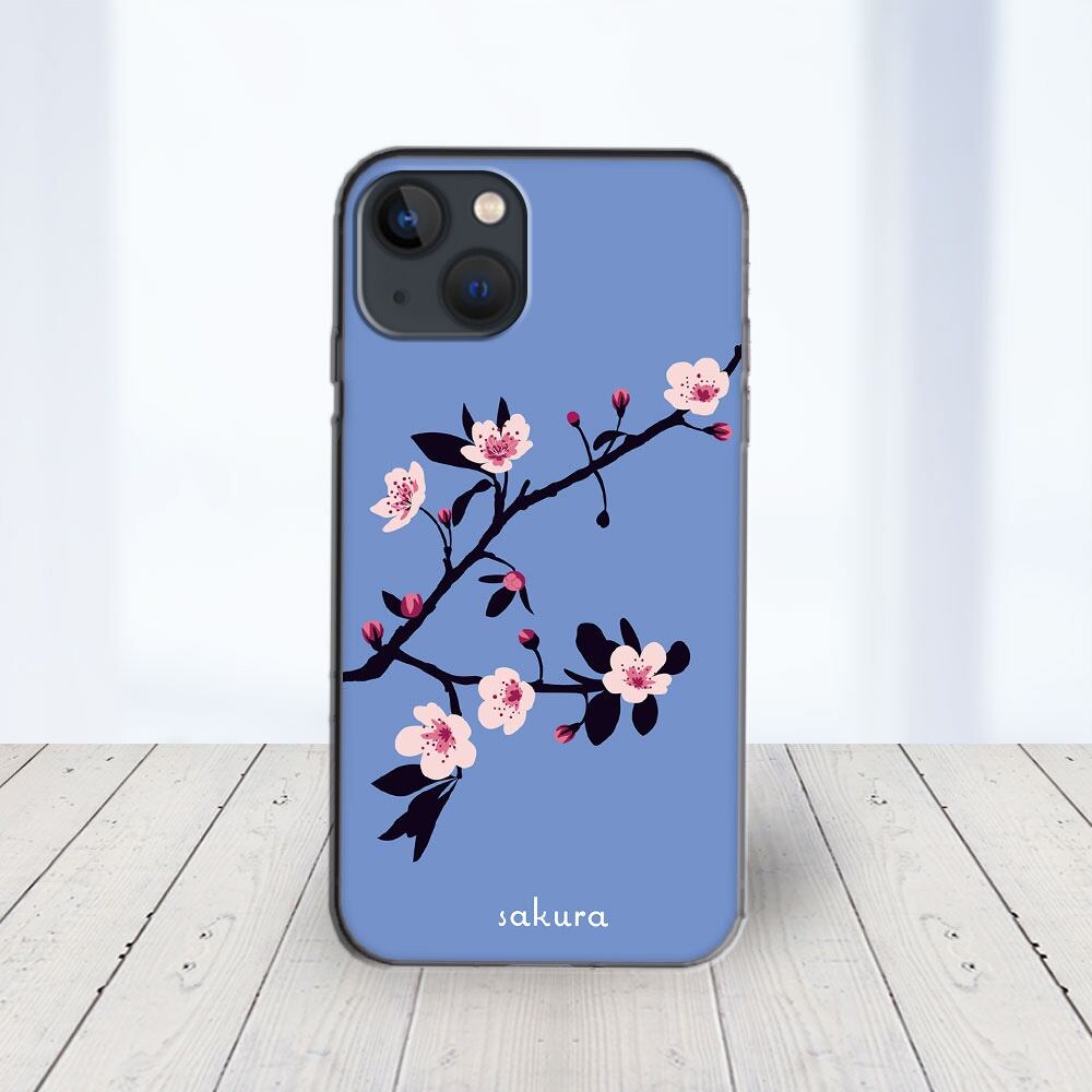 iPhone対応 スマホ ハードケース クリア サクラ ブルー 桜 花 デザイナーズ 【iPhone17 / iPhone16e / AQUOS / Xperia 他 iPhone / Android ほぼ全機種対応】 |desr3430