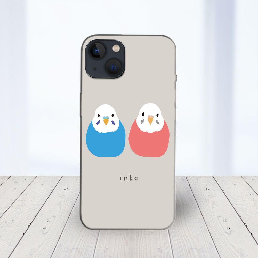 iPhone対応 スマホ ハードケース クリア インコ 青・ピンク 鳥 インコ 動物 デザイナーズ 【iPhone17 / iPhone16e / AQUOS / Xperia 他 iPhone / Android ほぼ全機種対応】 |desr3760