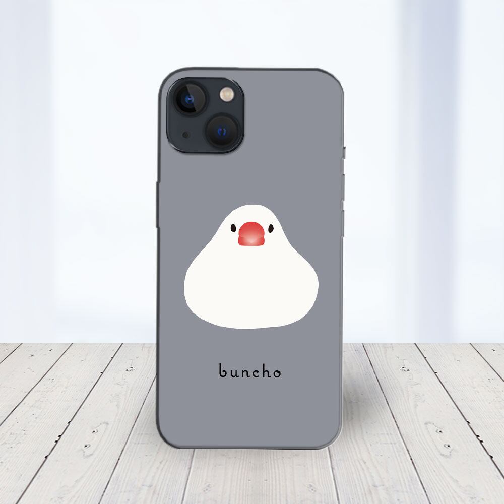 iPhone対応 スマホ ハードケース クリア 白文鳥 お餅ちゃん グレー 鳥 動物 デザイナーズ 【iPhone17 / iPhone16e / AQUOS / Xperia 他 iPhone / Android ほぼ全機種対応】 |desr3960