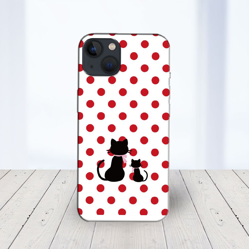 iPhone対応 スマホ ハードケース クリア 親子猫ドット-レッド 猫 足跡 【iPhone17 / iPhone16e / AQUOS / Xperia 他 iPhone / Android ほぼ全機種対応】 |dotoa103