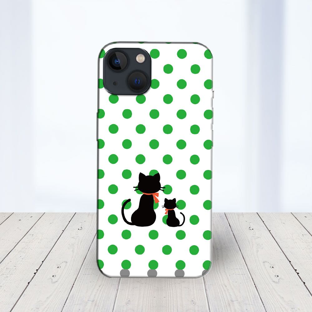 iPhone対応 スマホ ハードケース クリア 親子猫ドット-グリーン 猫 足跡 【iPhone17 / iPhone16e / AQUOS / Xperia 他 iPhone / Android ほぼ全機種対応】 |dotoa108