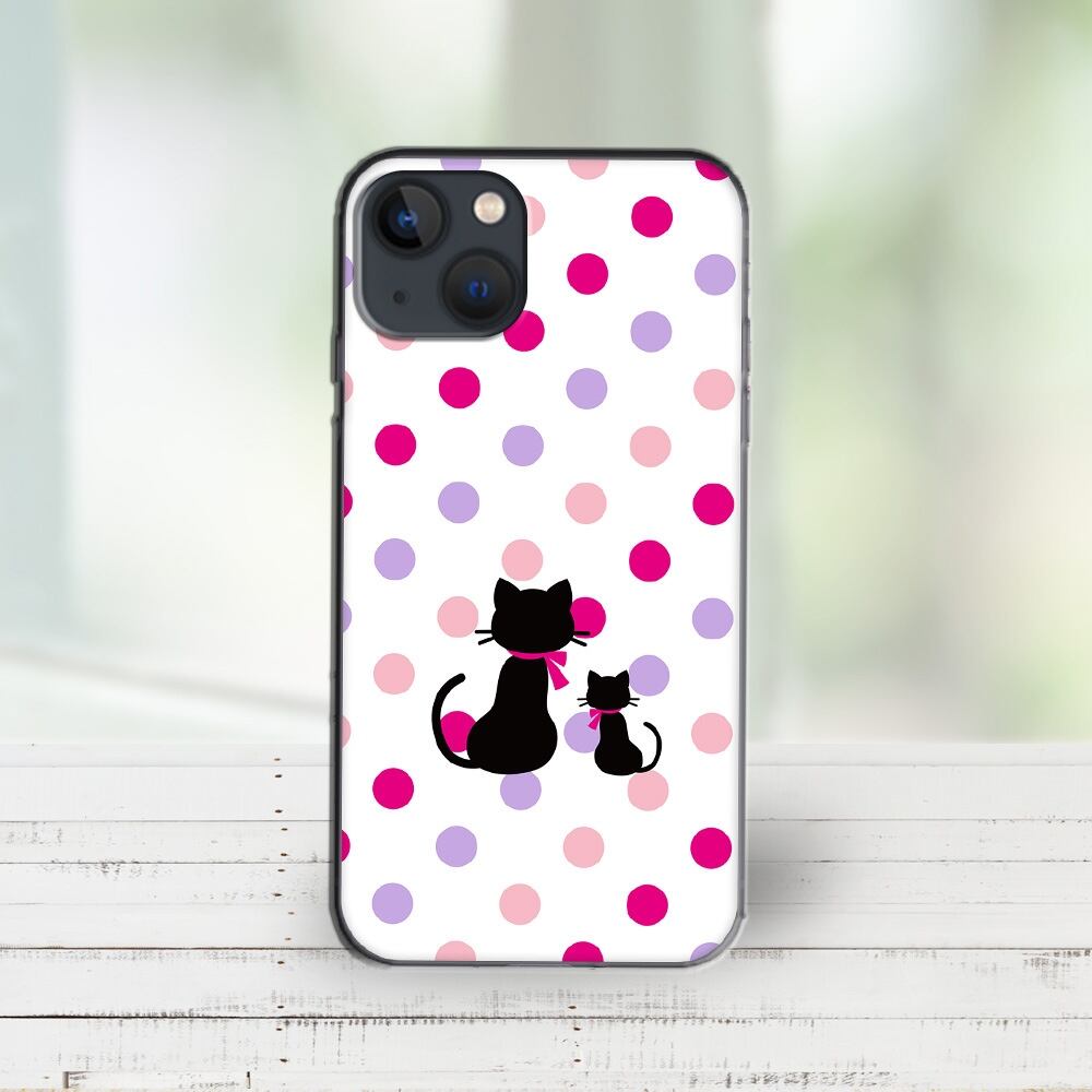 iPhone対応 スマホ ハードケース クリア 親子猫ドット-キュート 猫 足跡 【iPhone17 / iPhone16e / AQUOS / Xperia 他 iPhone / Android ほぼ全機種対応】 |dotoa367