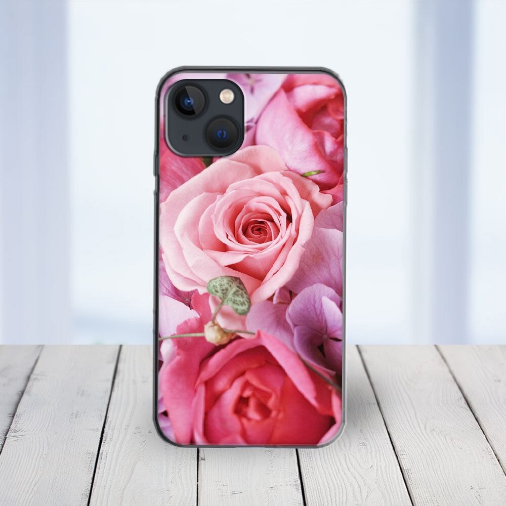 iPhone対応 スマホ ハードケース クリア 花バラ-ピンクB フラワー ローズ 【iPhone17 / iPhone16e / AQUOS / Xperia 他 iPhone / Android ほぼ全機種対応】 |rossa081