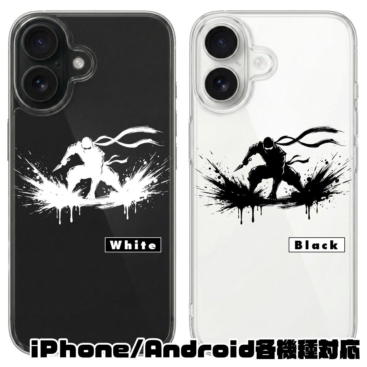 iPhone対応 スマホ ハードケース クリア シルエット 忍者 水墨画 ブラック ホワイト 日本 アメコミ ファンタジー Superhero Landing ワンポイント Sumi-e Silhouette Art シースルー 【iPhone17 / iPhone16e / AQUOS / Xperia 他 iPhone / Android ほぼ全機種対応】 |iajpnj01