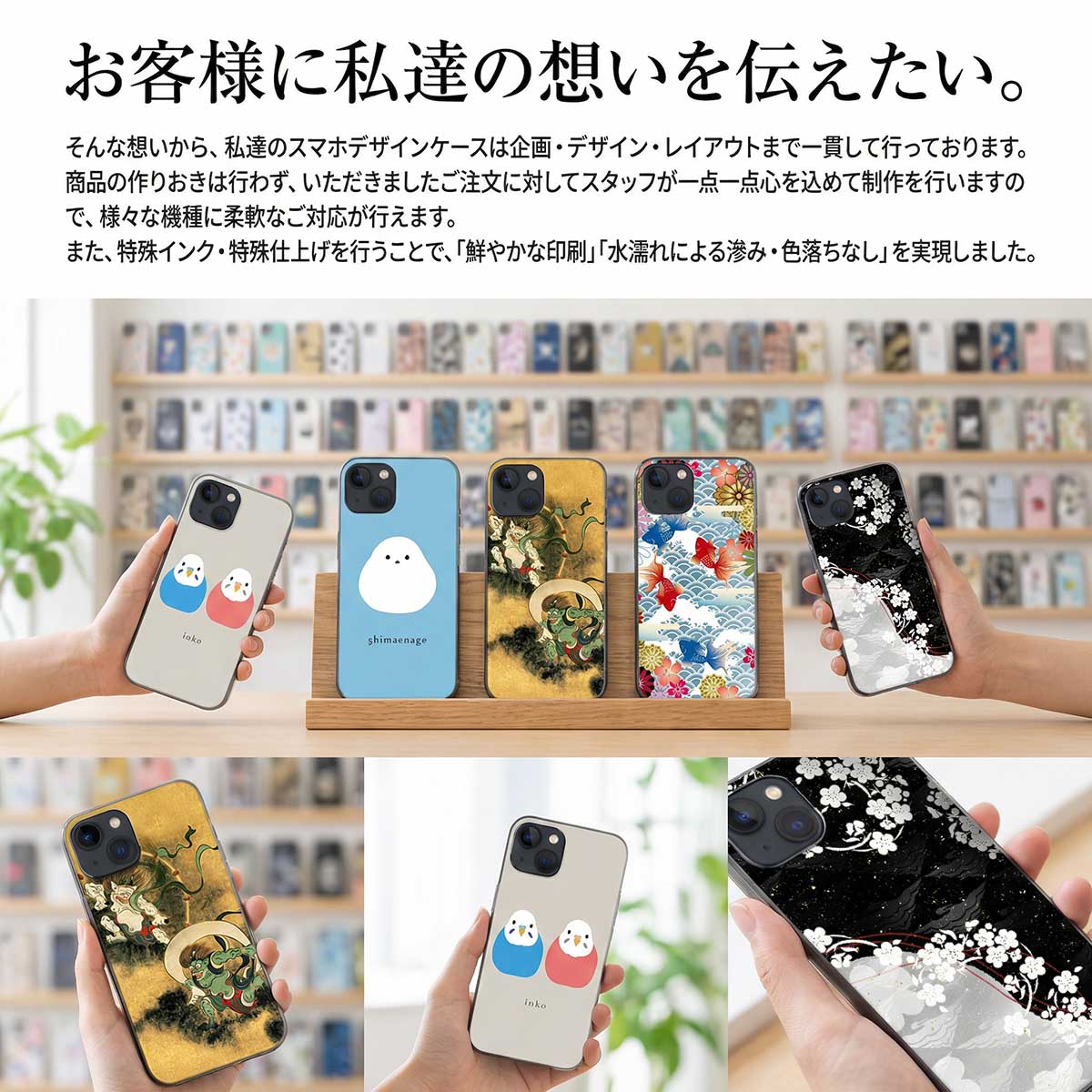 軽量・耐久性に優れた専用ハードケースに特殊印刷を施したデザインスマホケースです。
