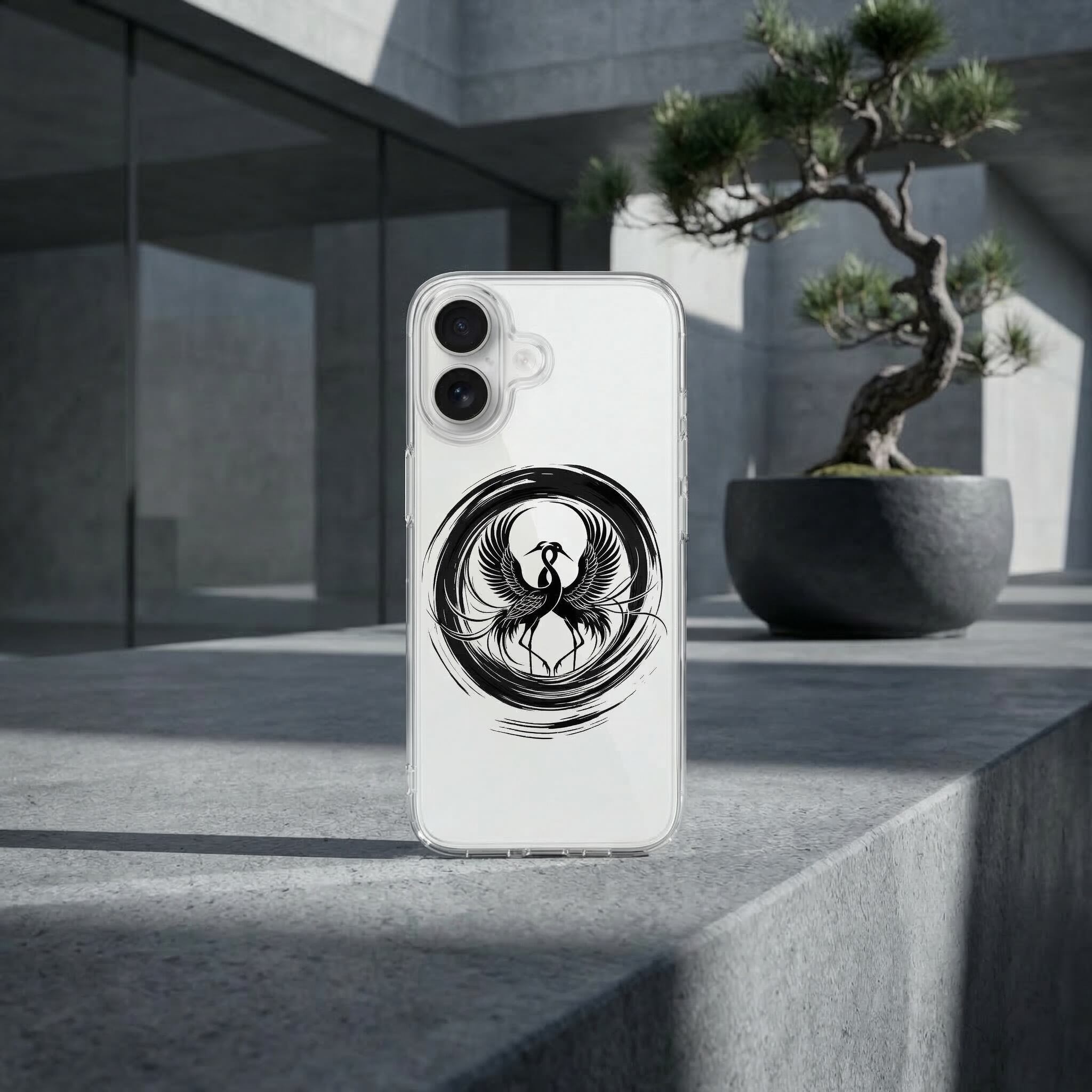 iPhone対応 スマホ ハードケース クリア シルエット 鶴 水墨画 ブラック ホワイト 黒 白 日本 ワンポイント Sumi-e Silhouette Art 和モダン 禅 縁起物 お守り シルエット 【iPhone17 / iPhone16e / AQUOS / Xperia 他 iPhone / Android ほぼ全機種対応】 |iajpcr01