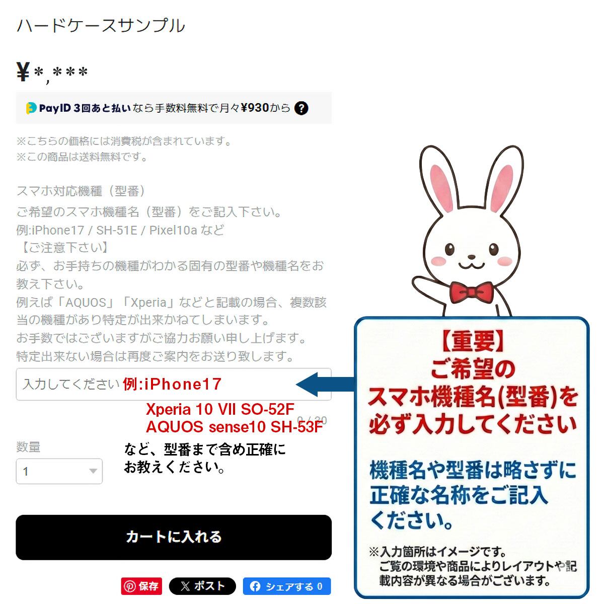 ご購入時、商品ページ【機種名記入欄】にご希望の機種をご記入の上ご購入お手続き下さい。