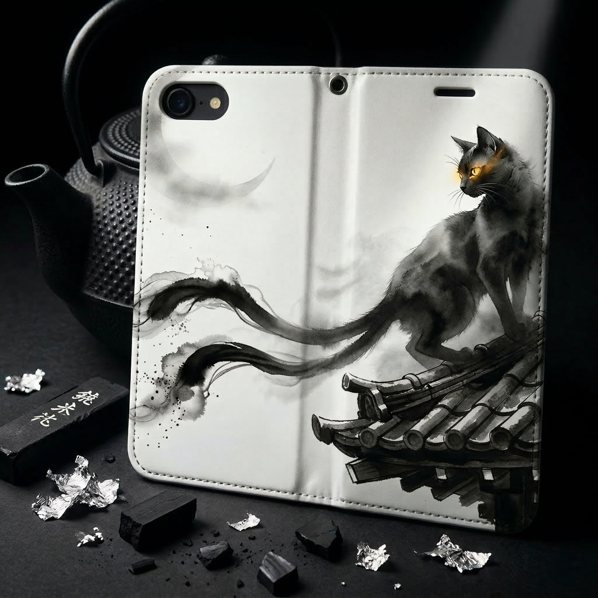 #日本 #スマホケース #手帳型ケース #猫又 #妖怪 #墨絵 #水墨画 #黒猫 #三日月 #和モダン #スマホケース #手帳型ケース #幽玄 #粋 #大人の猫グッズ #和風アート #ミステリアス #Nekomataス #Sumi-E #JapaneseArt