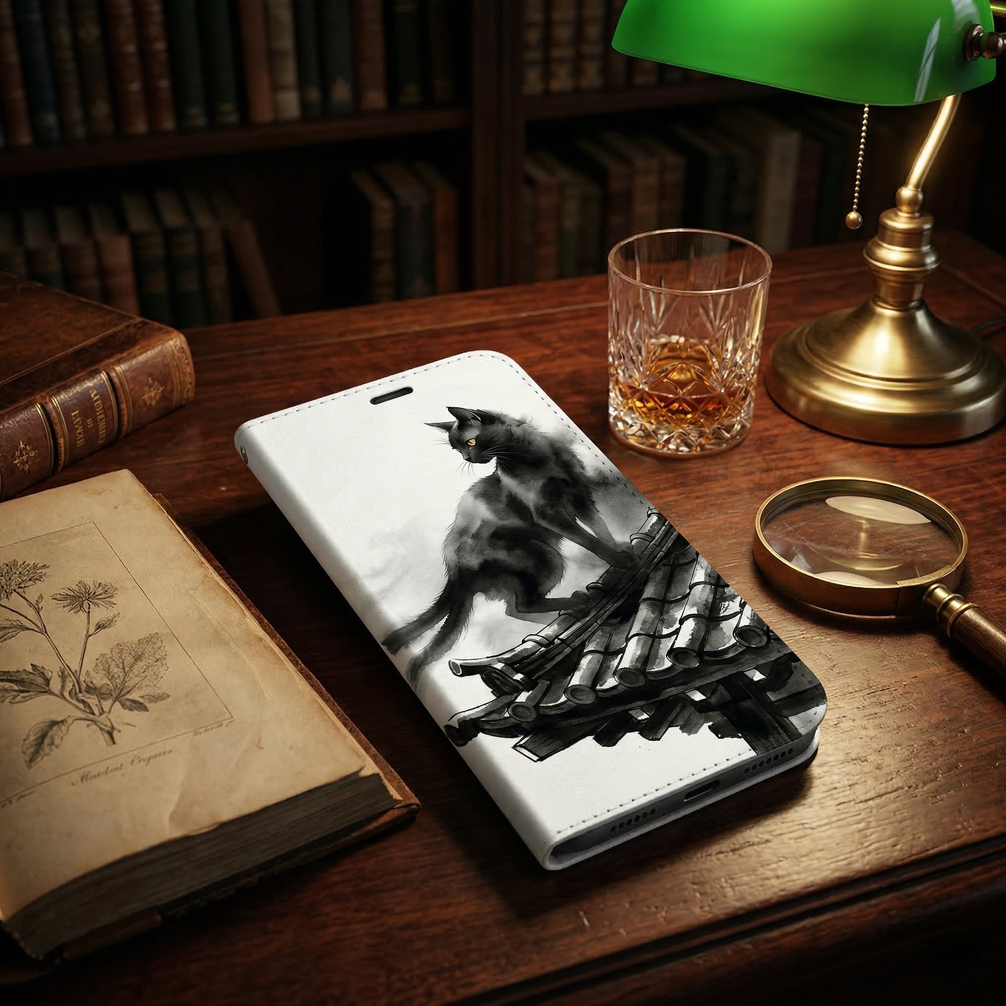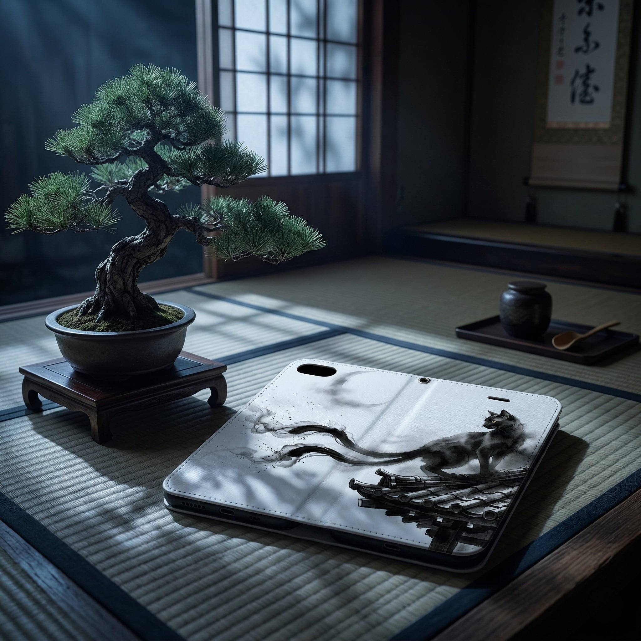Embrace the enchanting world of Japanese folklore with this sophisticated Sumi-e (ink wash painting) design. It delicately portrays a "Nekomata"?a legendary two-tailed black cat?under a serene crescent moon. The dynamic brushstrokes and elegant use of negative space create a captivating, minimalist aesthetic. Perfect for those who appreciate mysterious storytelling and refined traditional art, this case adds a touch of "Iki" (chic) magic to your everyday life.