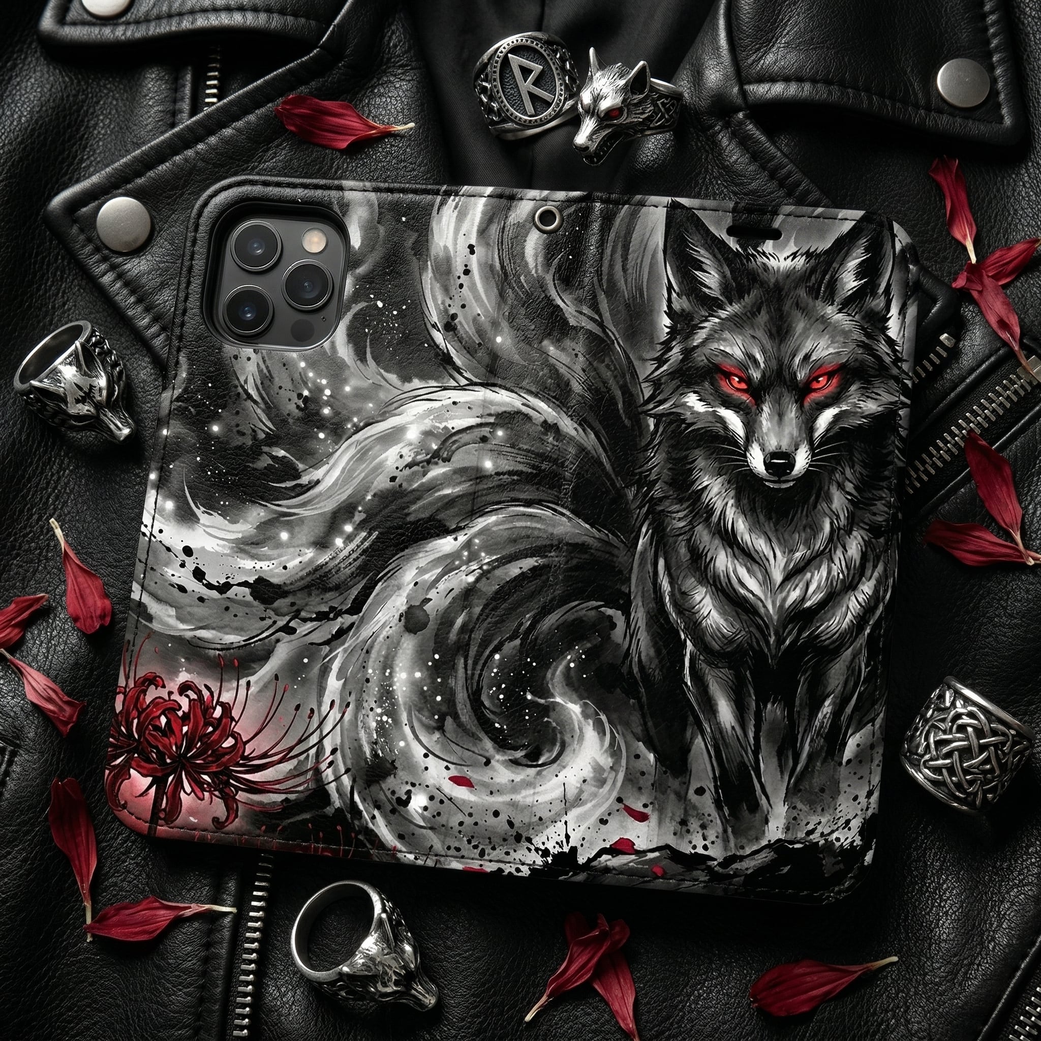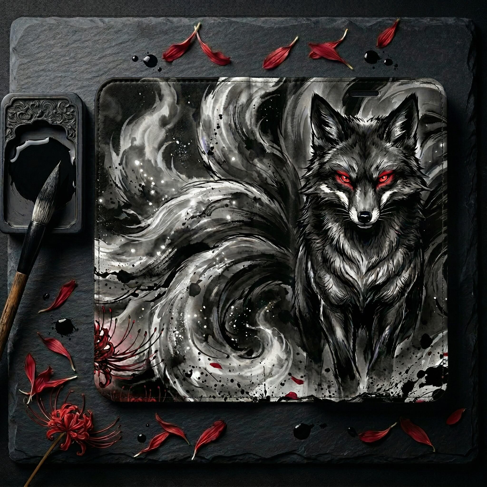 #日本 #スマホケース #手帳型ケース #墨絵 #水墨画 #手帳型ケース #スマホケース #和風 #ミステリアス #Sumi-E #JapaneseArt #九尾の狐 #彼岸花 #和モダン #漆黒 #妖怪 #ダークファンタジー #モード系ファッション #かっこいい #ミステリアス #和風アート #個性的 #Kitsune