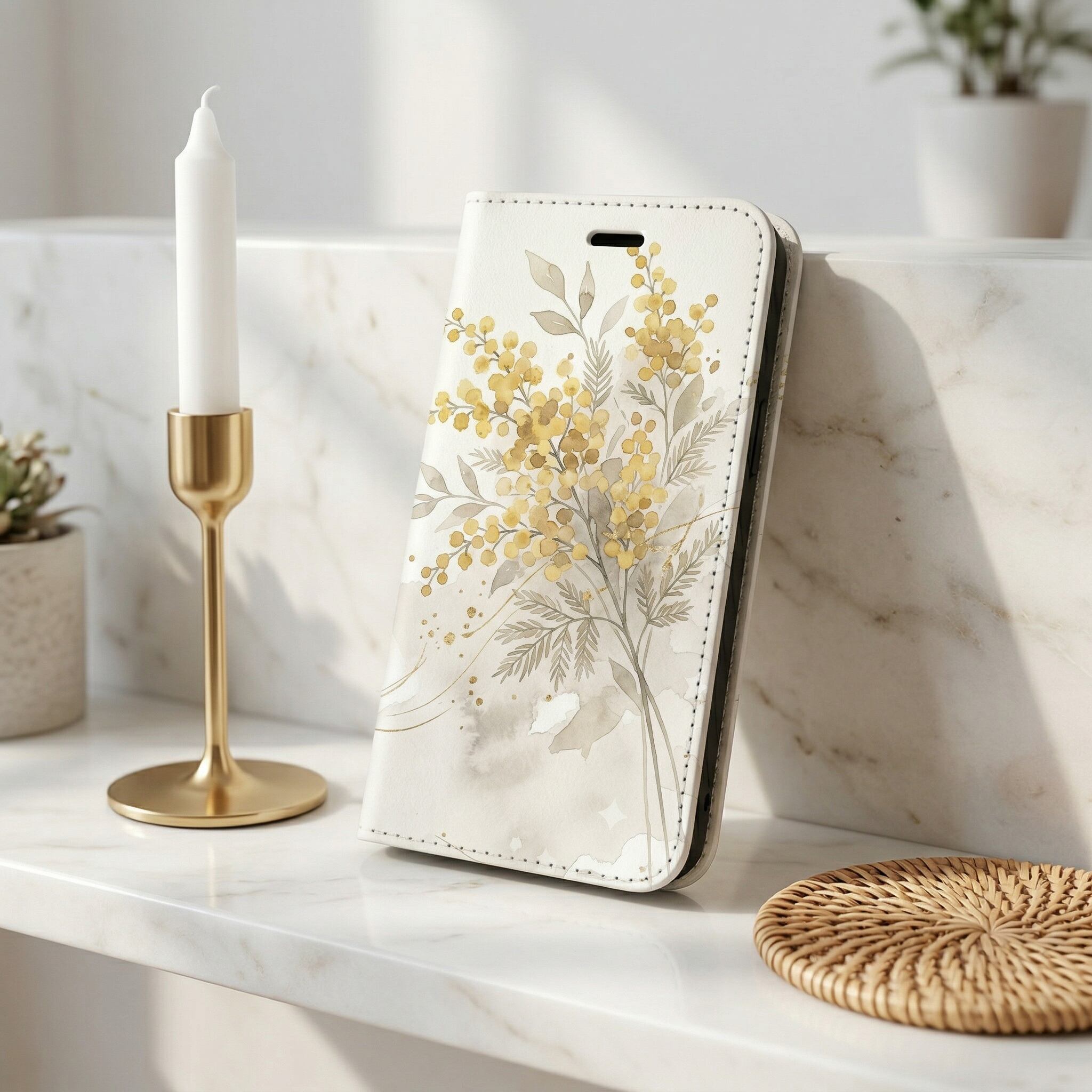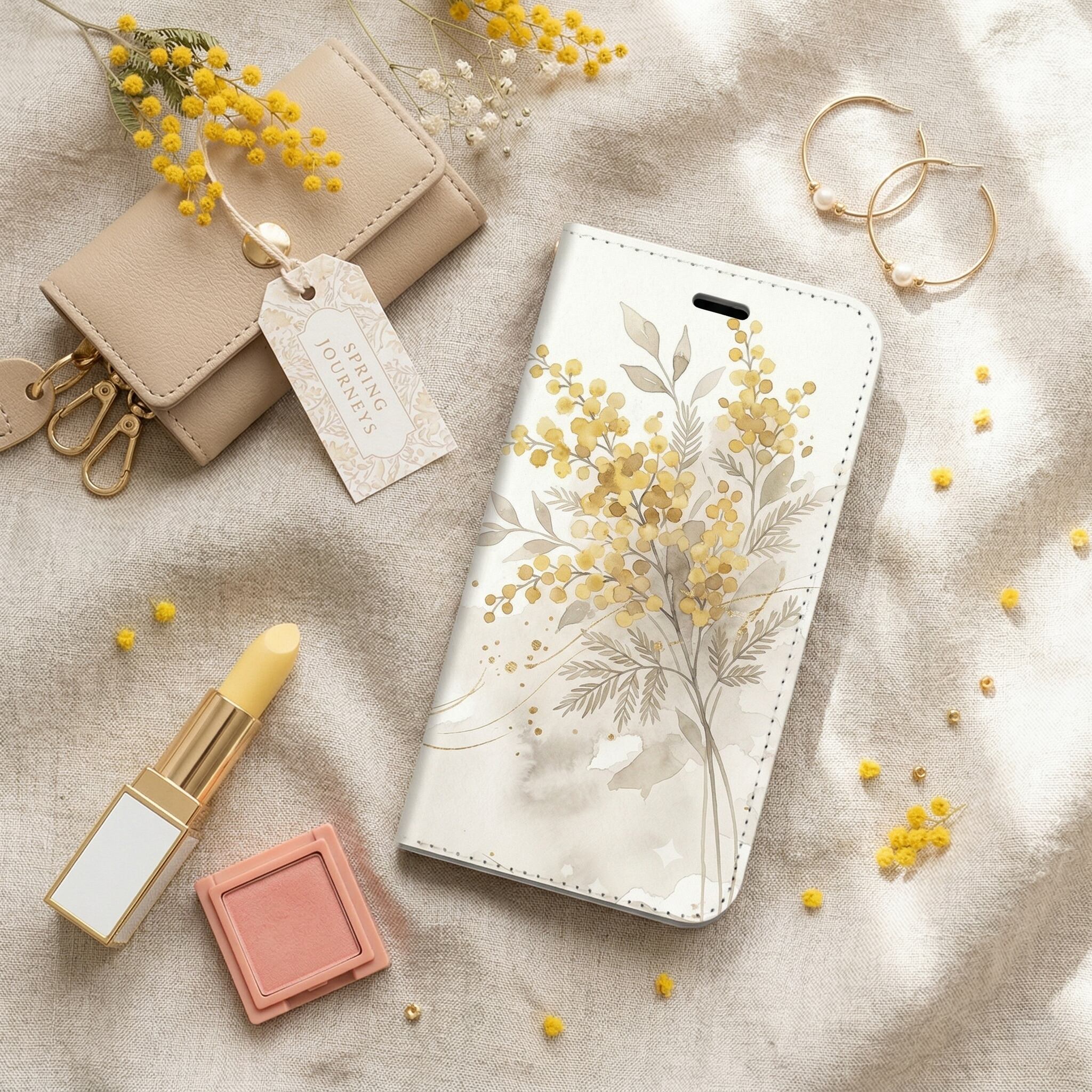 Embrace the season of renewal with this elegant watercolor botanical design featuring delicate mimosa flowers. The sheer, soft yellow blossoms and muted tones create a calming, sophisticated aesthetic perfect for everyday healing. Symbolizing happiness and gratitude, this beautifully crafted case adds a touch of graceful nature to your daily life.