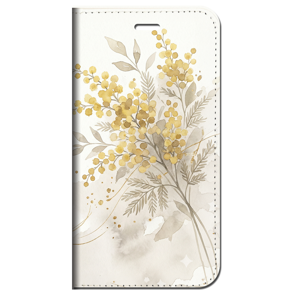 iPhone対応 スマホ 手帳型ケース ミモザ 花柄 水彩 ボタニカル 大人可愛い 春 イエロー くすみカラー 幸福 植物 フラワー ギフト フェミニン 癒やしスマホケース スタンド 【iPhone17 / iPhone16e / iPhone16 他 iPhone各機種対応】 |iaspfl01