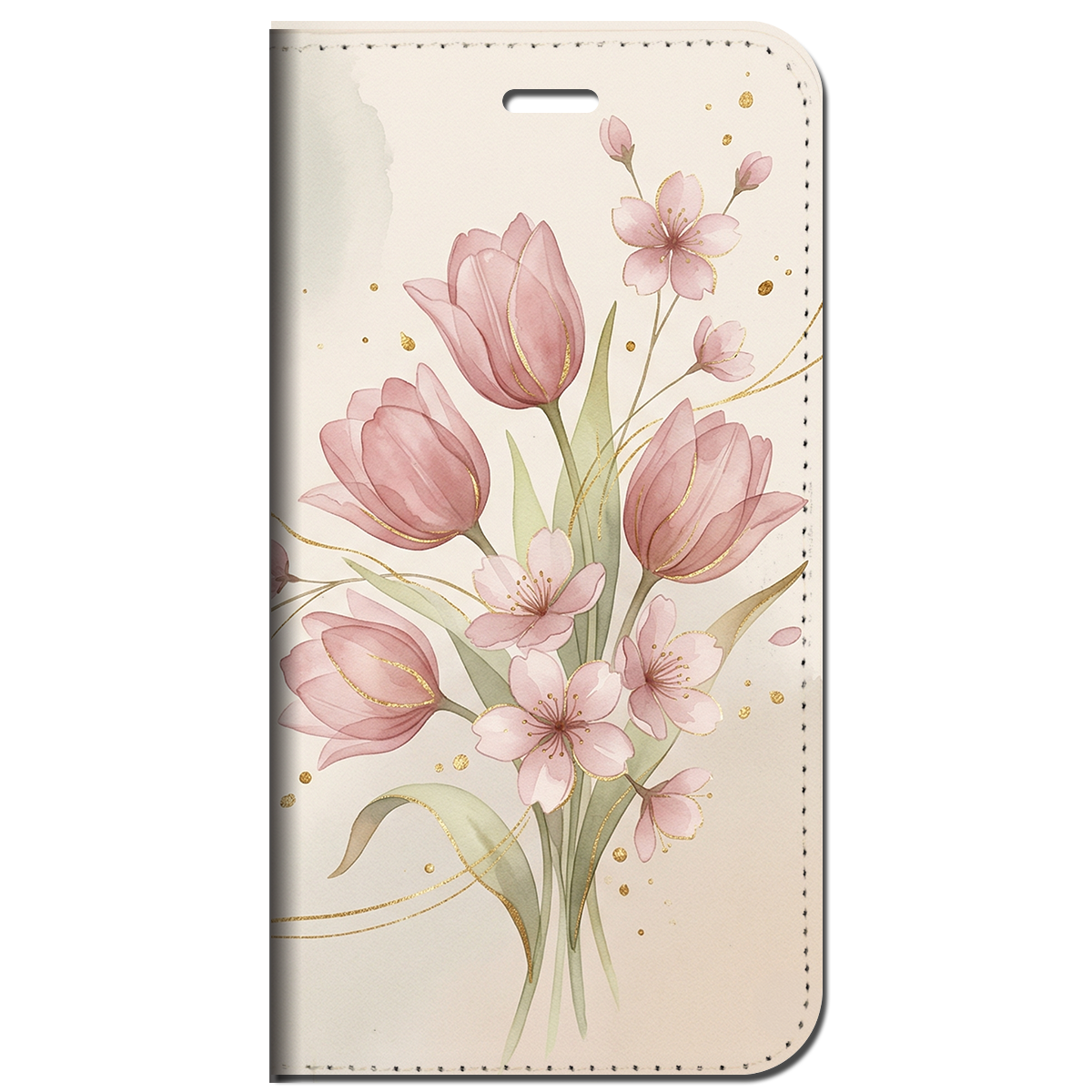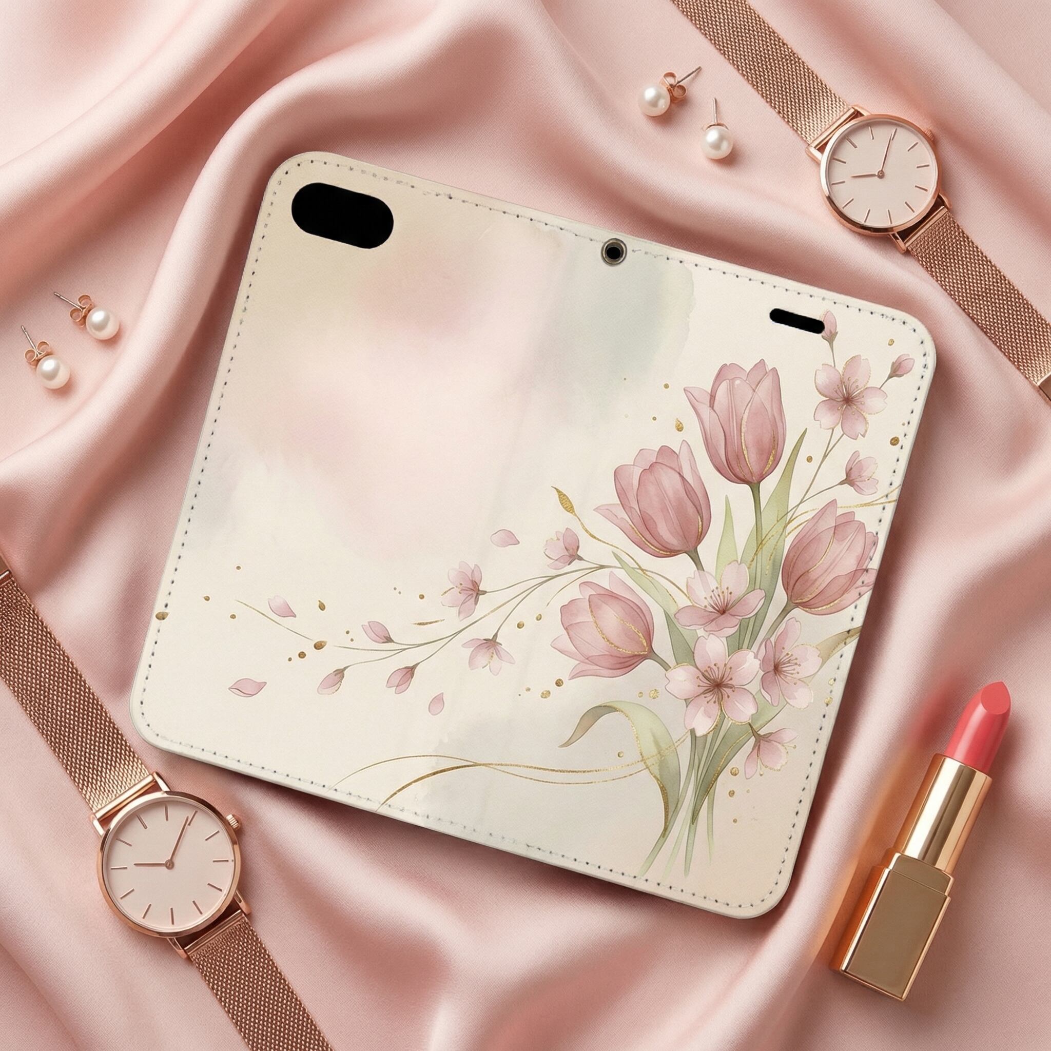 iPhone対応 スマホ 手帳型ケース チューリップ 桜 花柄 水彩 ピンク 春 ボタニカル 上品 大人可愛い 幸福 花言葉 ギフト 春色 ニュアンスカラー フェミニン 癒やし スマホケース スタンド 【iPhone17 / iPhone16e / iPhone16 他 iPhone各機種対応】 |iaspfl03