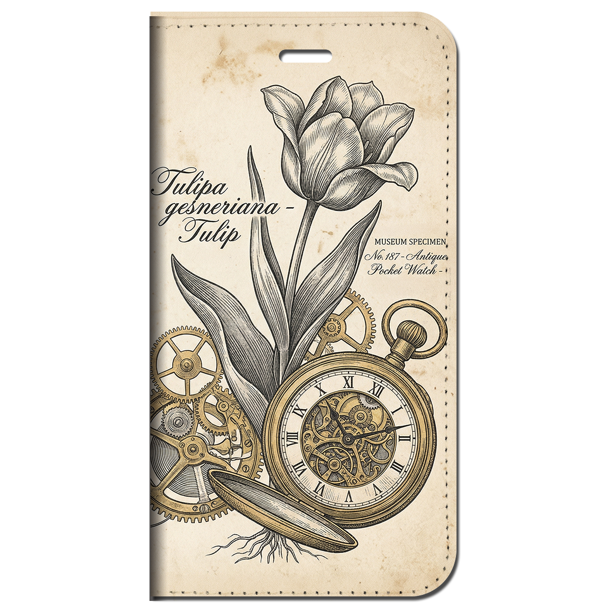 #スマホケース #手帳型ケース #懐中時計 #歯車 #チューリップ #アンティーク #ヴィンテージ #スチームパンク #博物画 #ボタニカルアート #機械式時計 #レトロ #エッチング #ダークアカデミア #大人かっこいい