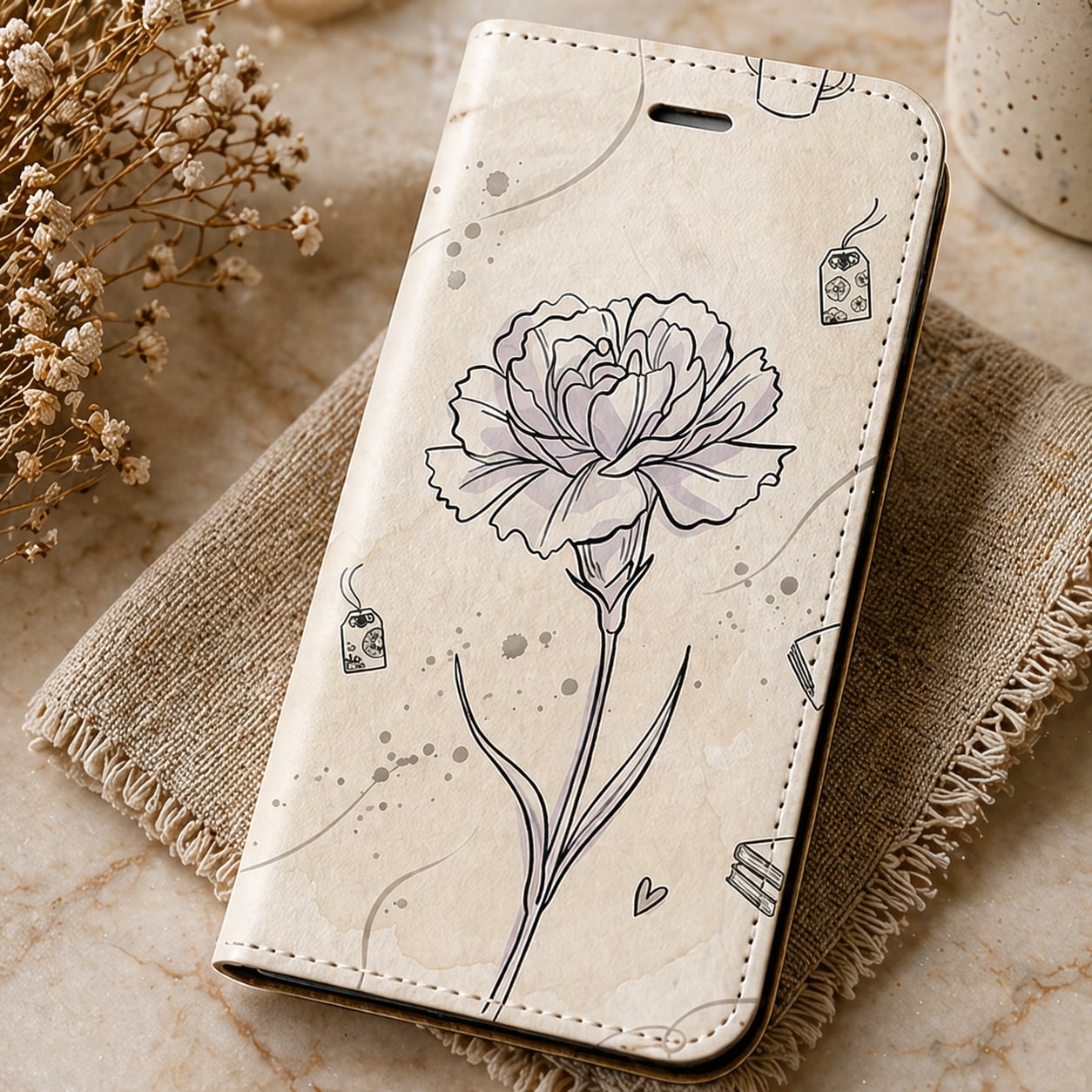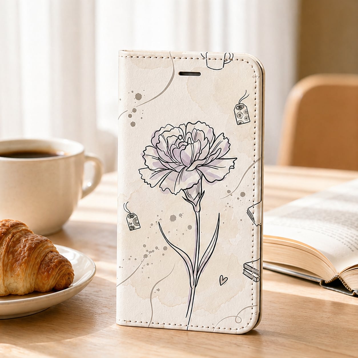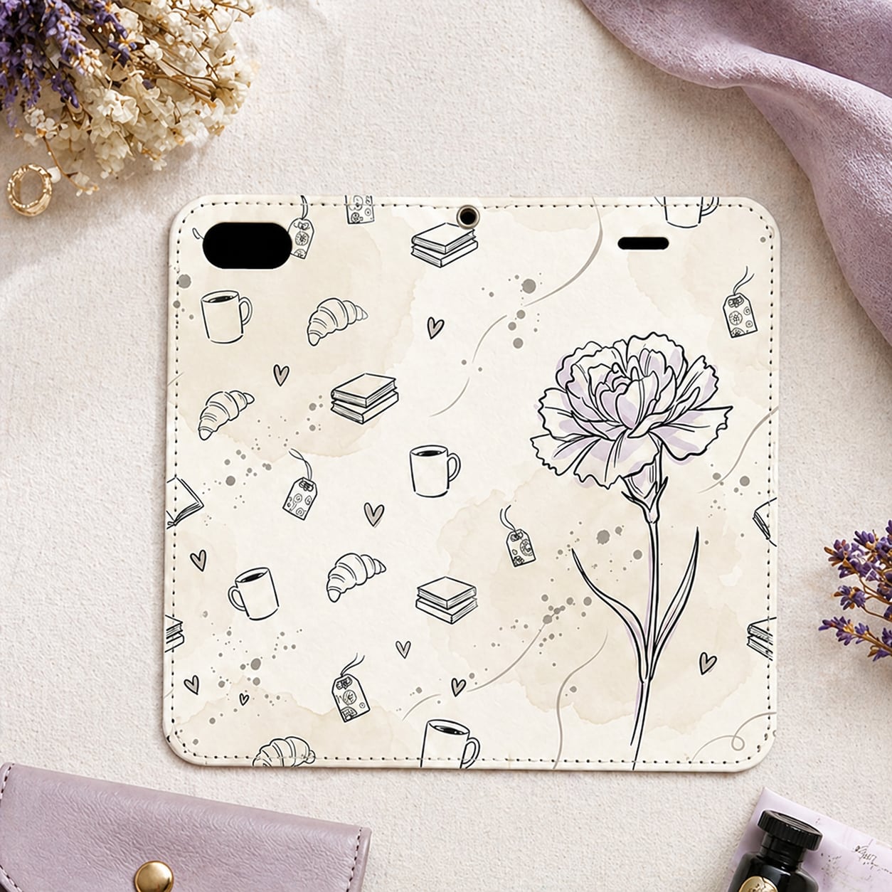 #スマホケース #手帳型ケース #母の日ギフト #カーネーション #韓国風 #ラインアート #線画 #カフェモチーフ #アイボリー #シンプル可愛い #大人カジュアル #くすみカラー #ペールパープル #ミニマリズム #プレゼント #癒やし #ゆるかわ #ギフトコレクション #母の日プレゼント